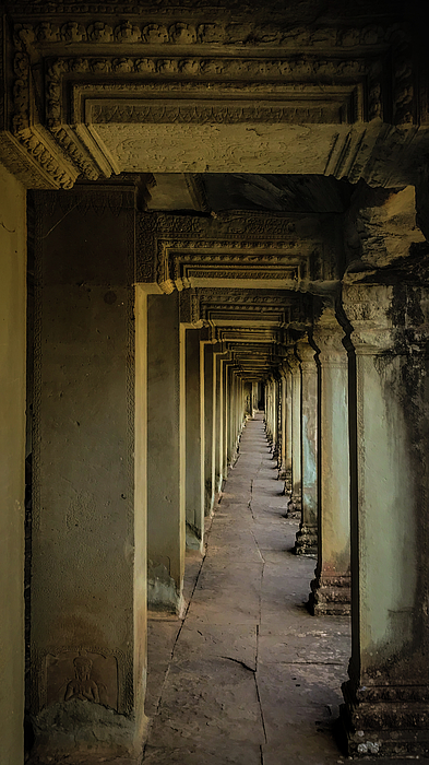 Be transported back in time as you walk through the ancient Angkor Wat hallway lined with intricately carved stone pillars. This stone hallway in an... more
