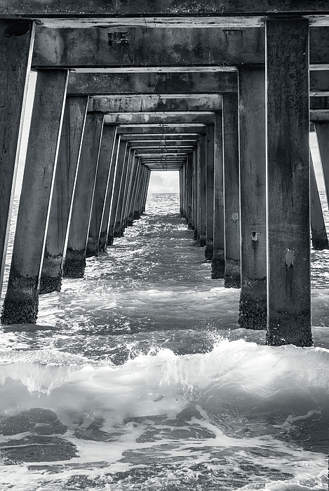 Beautiful B&W photograph of the supports of a Pier!