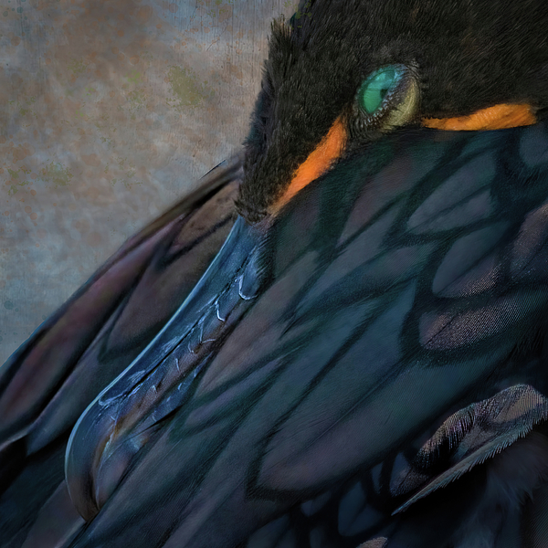Cormorants fascinate me. This male cormorant was napping mid morning in the Florida Everglades. How do I know it's a male, the incredible eye color. They are a gorgeous aquamarine and they shimmer like jewels. His head was nestled on his back feathers, so his beautiful detail in not only his eye, but his beak and the feathers are all clearly visible.